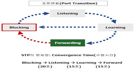 Blocking ==20 seconds == > listening ==15 seconds ==> Learning ==15 seconds ==> Forwarding